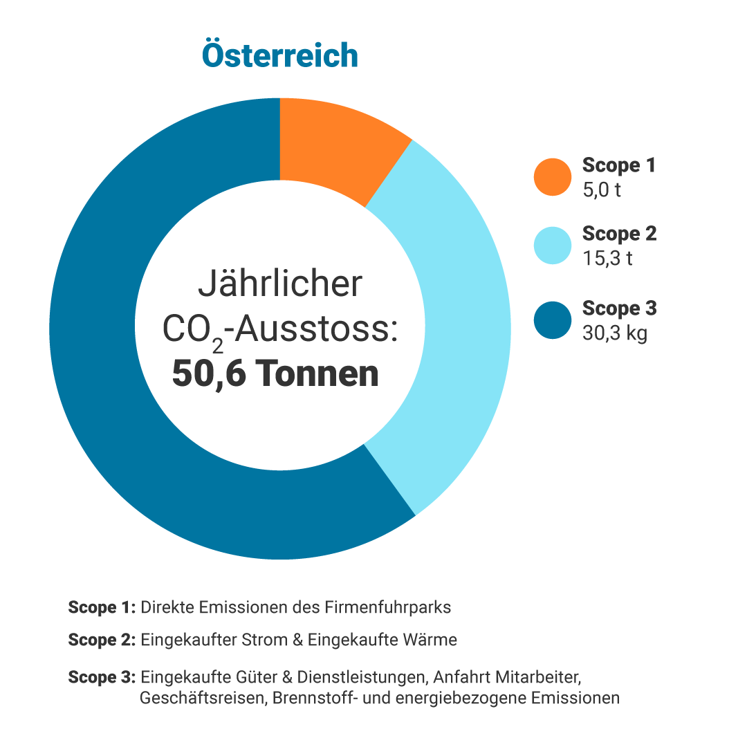Erst auf Basis einer detaillierten Emissionsanalyse für unsere Standorte in Österreich und Deutschland lässt sich präzise ableiten, welche Bereiche das größte Potential hinsichtlich einer Reduktion des jährlichen CO2-Ausstoßes haben.