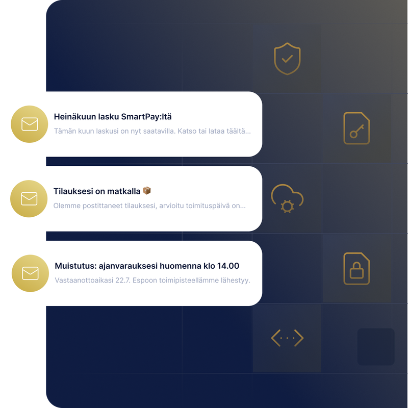Lähetä sähköposti-ilmoituksia, muistutuksia ja vahvistuksia LINKin tehokkaan infrastruktuurin ja älykkäiden reititysprotokollien avulla. Turvallinen API takaa nopean ja seurattavan toimituksen kaikkialle maailmaan.