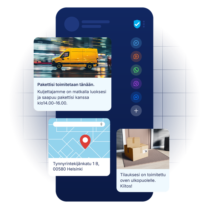 Viesti aikataulumuutoksista ja toimituksen päivityksistä reaaliajassa.
