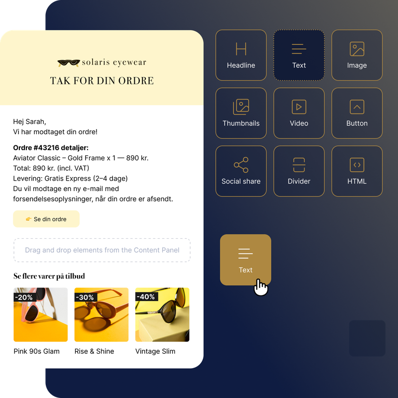 Dynamisk indhold i nyhedsbreve tilpasses automatisk modtagerens interesser og tidligere adfærd og er fuldt integreret i Builder. Det gør det nemt at sende forskellige versioner af samme kampagne og kan kombineres med Feeds-funktionen.
