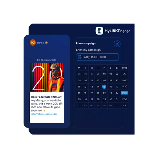 MyLINK Engage är en kraftfull och användarvänlig SMS-plattform där du kan skapa personliga kampanjer för att nå rätt kund med rätt budskap. Oavsett om du vill konvertera nya kunder eller återuppliva befintliga relationer hjälper MyLINK Engage dig att maximera effekten av dina kampanjer under Black Week och julhandeln.
