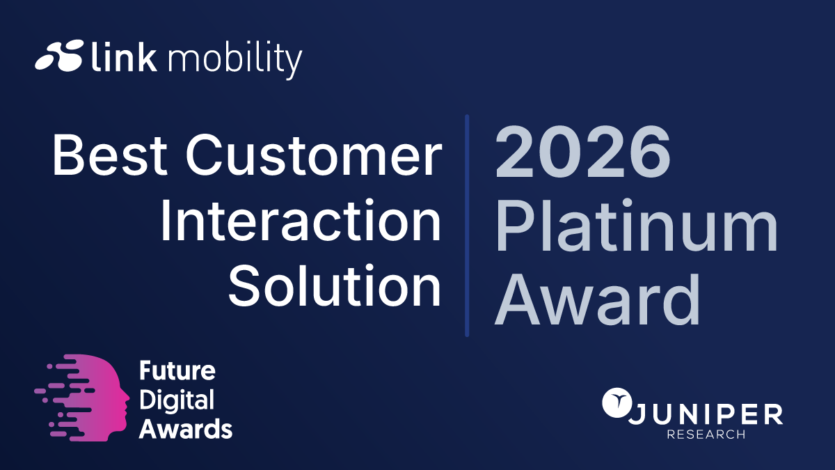 LINK Mobility har utsetts till Platinum-vinnare i kategorin 'Best Customer Interaction Solution' av Juniper Research. Utmärkelsen uppmärksammar innovationen och affärsnyttan i MyLINK Connect – LINK Mobilitys lösning för konversationsbaserad kundkommunikation.
