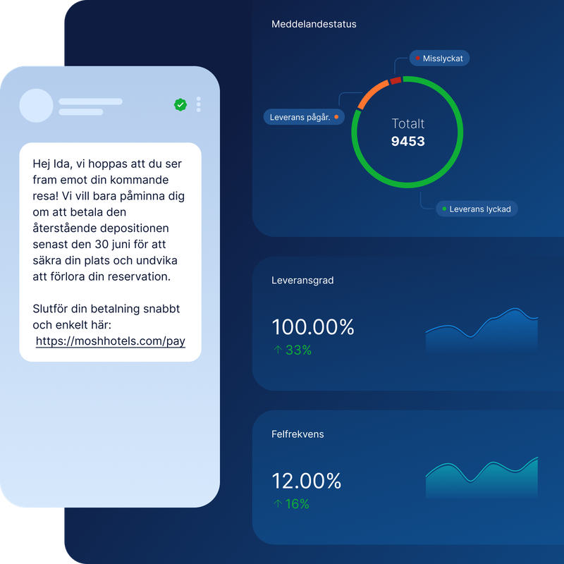 Ta del av realtidsrapporter med insikter om när dina SMS-utskick levererats eller misslyckats. Med leveranskvitton får du full transparens och insyn för prestandan i dina utskick.