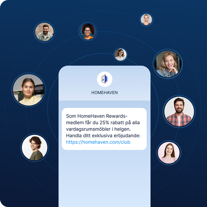 SMS är en effektiv kanal när du vill fånga kundens uppmärksamhet utan att överväldiga. Skapa korta, koncisa och effektiva SMS-utskick med enkla budskap som konverterar.